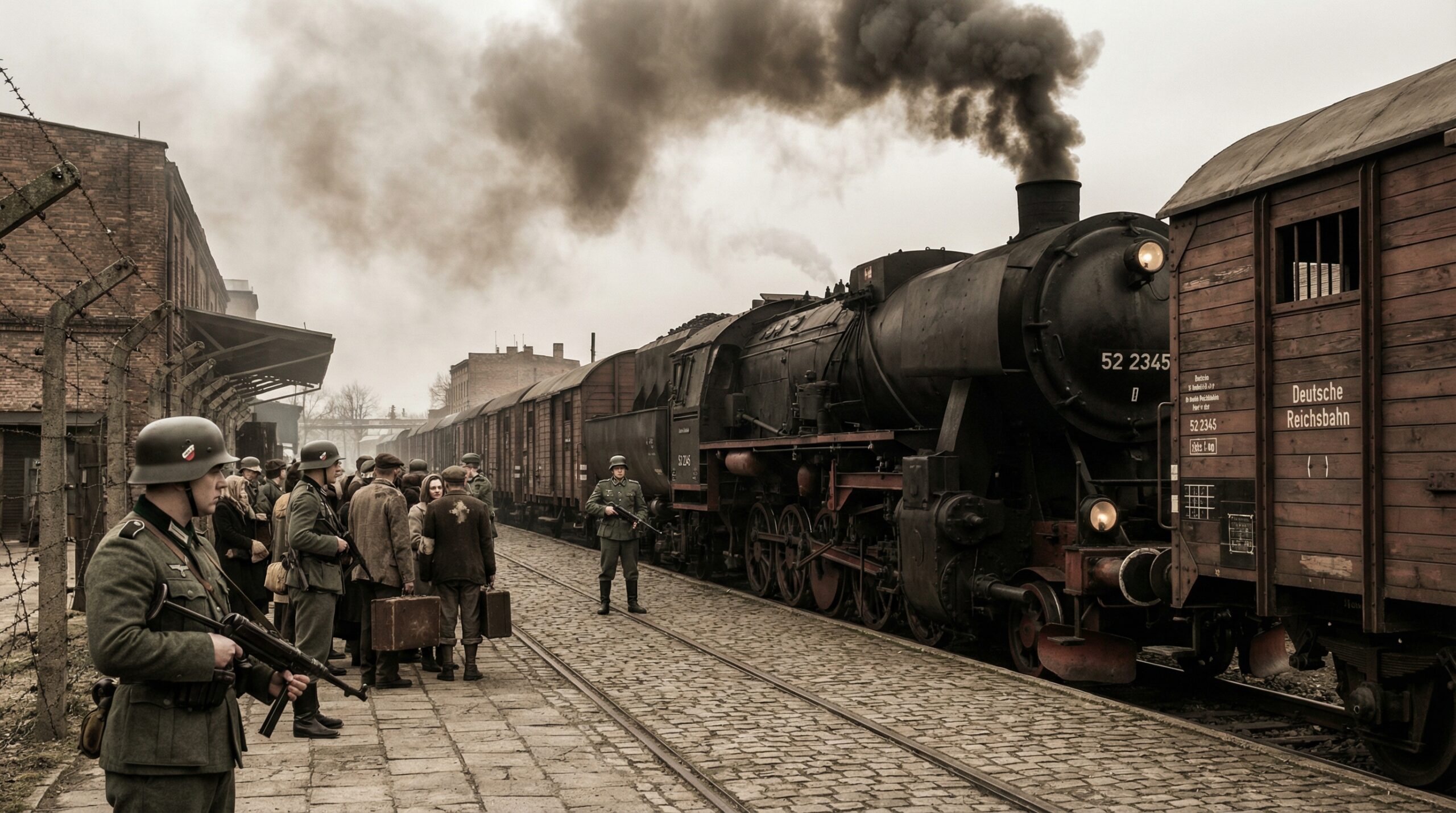 Nas noites silenciosas da Polônia ocupada, o eco do apito da locomotiva cortava a névoa. Para os camponeses locais, era o sinal de que mais um carregamento de “especiais” estava chegando. Para os que estavam lá dentro, era o som final da civilização. O rastro de fumaça negra das chaminés das locomotivas misturava-se, quilômetros à frente, com a fumaça mais densa e gordurosa que subia dos crematórios. O aço e o fogo estavam unidos por um contrato administrativo assinado em Berlim.